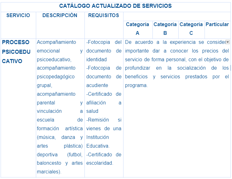 Portafolio actualizado de servicios: